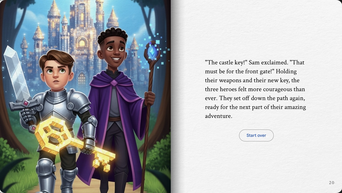 “My kid’s face LIT UP.” We uploaded a photo of my son in his Halloween costume, and the story turned him into a space explorer with a slime-powered jetpack. He’s read it five times and keeps asking when the sequel drops."—
